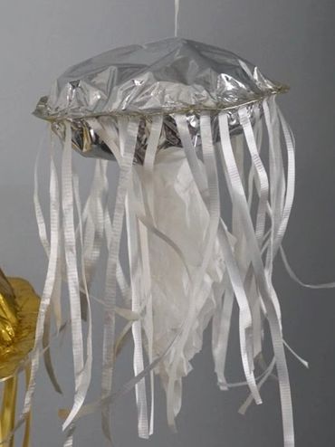 Measuring 4'x4'x3', this work was an experiment using collage and photo paper to mimic motion of a betta fish as it swims and explores its space.